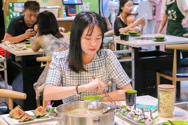 嗲嗲家的鸡肉干净透亮,放入了鸡肉和竹荪在锅中煮三分钟就可以开动,掀开锅后那份香甜扑鼻而来,汤色没有多余油星,开锅后我立马尝了一块鸡肉,我说鸡肉肉质咋那么鲜嫩又有弹性,原来文昌鸡在散养150天后能达到在皮弹肉香的境界,在煮开后,服务员会帮我们调节火候,微微滚动的程度可以让椰子与鸡汤慢慢融合,也让枸杞和红枣的营养融入汤底,吃到最后的椰子鸡汤味道才最为鲜甜。