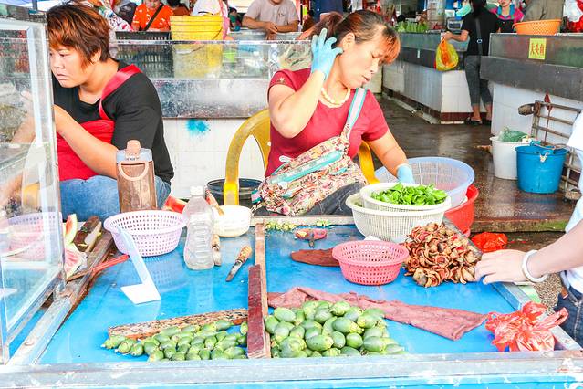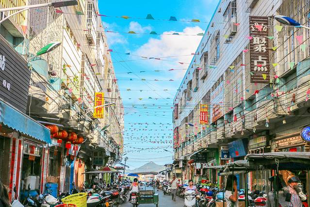 第一市场的海鲜农贸市场不算精致,但却生动地记录着这座城市舌尖上的鲜味历史,街边老旧的居民房透露着沉淀的旧事,喧闹的大街上除了游客,更多的是本地人嚼着槟榔喝着茶的休闲生活,市场里忙碌的商客在讨价还价,特色小吃和热带水果的香味飘香街头,这里是三亚市场的雏形。