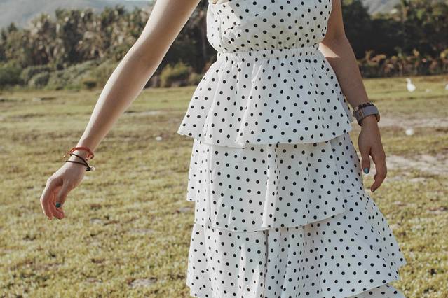 喜欢这件轻婚纱的小长裙,薄纱质地非常柔软,不会让人觉得累赘,裙子点缀了菠菜绿的花纹,搭配收腰的设计,穿上显瘦哦~