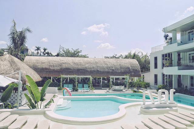 比邻near椰林美宿的泳池旁还有三栋木屋别墅,出门就可以享受到椰林和泳池,在比邻这可以轻易就收获惬意满满的度假风。在泳池旁还有一个茅草酒吧屋,夜晚时在这里和朋友喝上几杯热带风情的鸡尾酒。