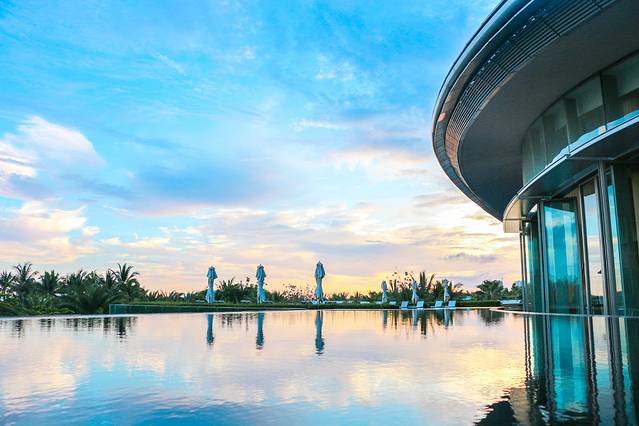 绿城蓝湾威斯汀度假酒店在绿城蓝湾小镇里面,这一家威斯汀属于度假酒店,到达的时候是午后,不知道是不是三亚淡季的缘故,整个酒店十分清净,看到了不少老外都在这里度假。后来才发现这家酒店就是抖音上很火的那家,总统套房里阳台就是无边泳池。