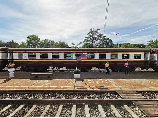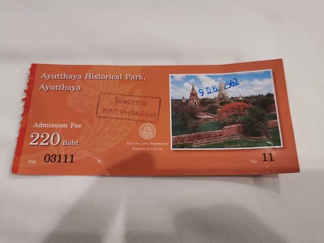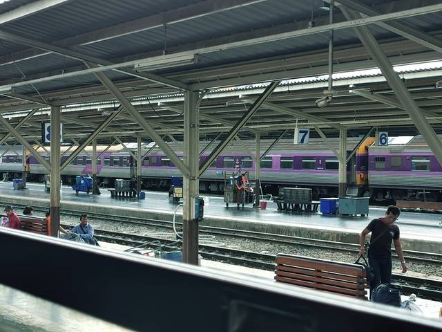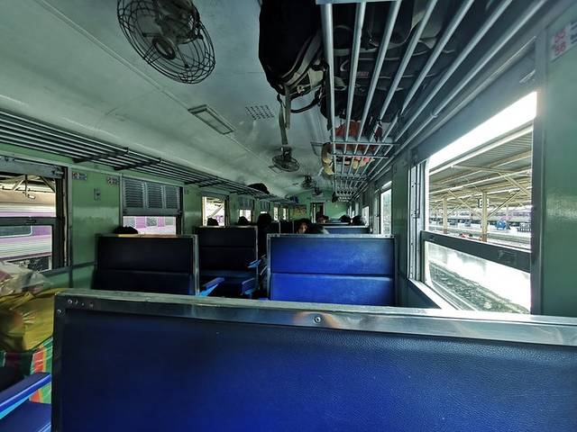 根据攻略,我选择了坐火车去 大城 ,也就是阿育塔亚。第一步,早起,如果你想在第一时间到达 大城 ,早起是必须的,于是,我六点钟就起床,匆忙打了grab的摩托(选择余地很大,一个人,摩托车最方便,还不怕堵车,司机会带你风驰电掣的穿梭在大街小巷)到达华南蓬火车站(Bankok railway station)在窗口和售票员说买去阿育塔亚就好,20铢,很便宜,对不对?但是,鉴于我之前看到的一篇攻略,后来根据我的分析,这个票是没有座位号的,但不是想象的那种随便坐,而是我们国内意义上的无座票。别问我为什么买无座票,售票员阿姨给我的就是这个票,检票大叔也说了,这个票没有number,好在,一路上,没有人要我把座位让出来!在这里说一下,我是周末的行程,车上人蛮多的,到阿育塔亚时,基本坐满了,所以我寻思着,其实,很多人也都不按座位号入座的吧!