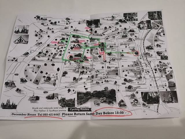 出了站,到马路对面,花5铢坐船过河,上了岸就有租车的地方。直接选了变速车,护照复印,交钱100铢,拍下锁的密码,上车走人。老板很细心的给了我一张地图,可惜,我根本没认真听他讲了什么!
