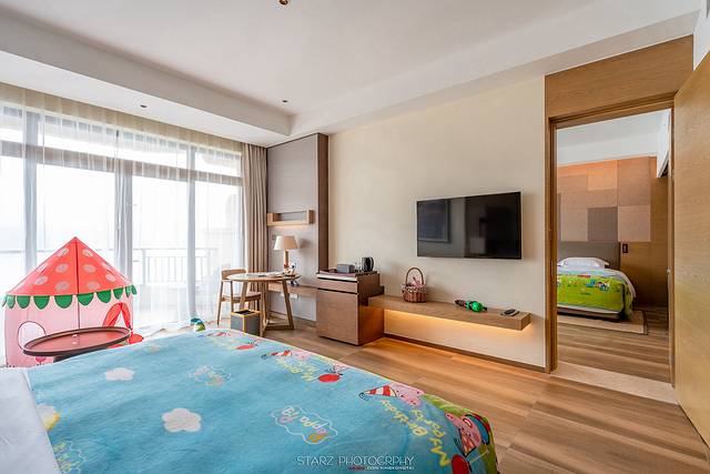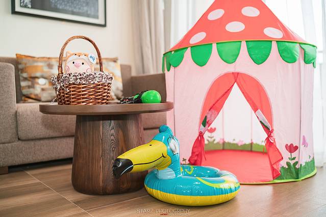 房内除了童真的装饰风格外,还特地未小朋友而配置了可爱的公仔、水枪和游泳圈,最受小侄子喜欢的莫过于就是房间内的马戏帐篷,都迫不及待的走进去玩耍起来!