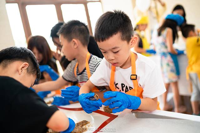 经过大厨的细心指导,小朋友迫不及待的开始动手制作属于自己的曲奇饼。别说平时不教小孩做饭烧菜,真要他们自己动手起来可像模像样的!虽然饼底是准备好的,孩子们只需要动手压模就能够完成,但凭借着他们五花八门的聪明才智,把普通的曲奇形状弄得形状各异,实在太有趣了!没错,必须颠覆传统才能够有所突破,世界的未来就靠你们了!