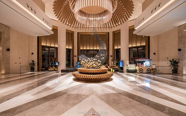 客家文化浓郁的惠州,在酒店装饰方面不仅融合了西班牙建筑风格,还融入了不少客家设计元素在内。进入大堂你就能看见充满客家风情的大鱼海棠雕塑和吊灯,十分漂亮!而设计理念更是乐观积极,酒店希望每一位在店放松的客人都珍惜大自然为我们提供的优美环境和资源,这也与希尔顿品牌的“带着目的去旅行”的价值观不谋而合。