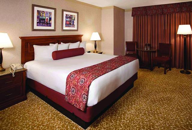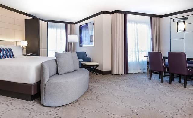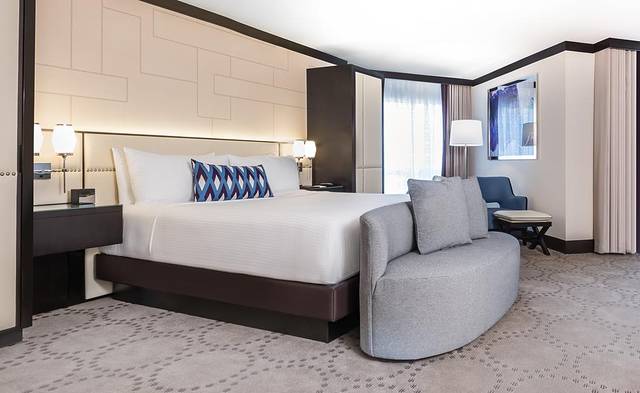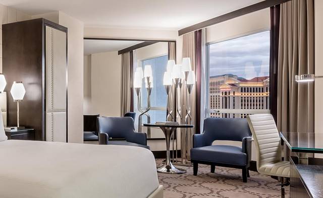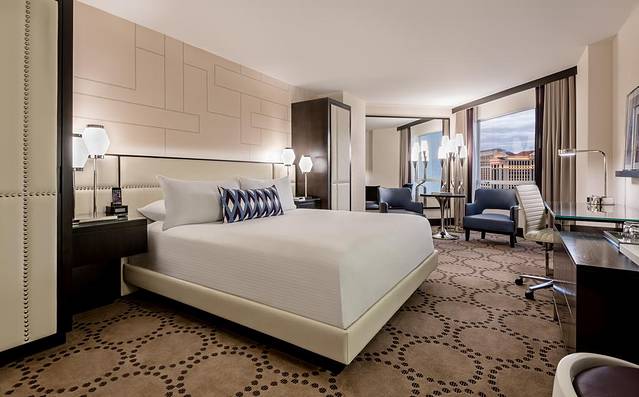 足不出户即可尽享拉斯维加斯无敌美景,床上都采用高档寝具,房间配置有高清电视,迷你吧,咖啡机和电脑扩展口,浴室内配有梳妆台和淋浴器。