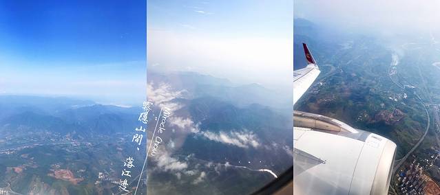 不同于云南的蓝色,快降落时候的桂林是绿色,山清水秀的颜色。