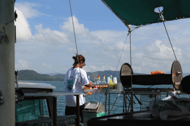 第二天,预约了出海到红树林无人岛探险,宝和朋友早起后换上比基尼和裙子,戴好墨镜,到码头跟船出发。