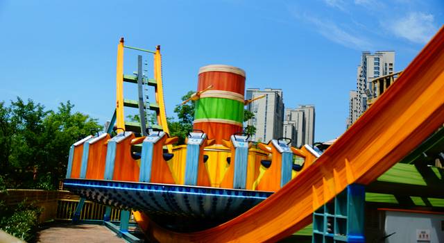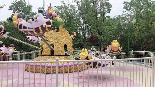 亚马逊大冒险游戏结束,我们决定先带小宝去儿童区梦蝶仙境玩耍。梦蝶仙境是以庄周梦蝶为创作蓝本的儿童游乐区,我们几乎把这个区域的项目玩了个遍。彩蝶飞舞是彩蝶造型的低空缆车,坐在上面可以慢悠悠的欣赏到整个梦蝶区域的景色;春蚕吐丝像是乘坐了一个升到空中的热气球;果虫滑车是毛毛虫造型的儿童版过山车,大厨展艺像是坐在一个大碗中,随着音乐声旋转摇晃…