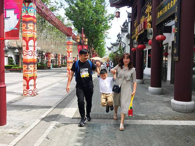 画上原始人风格的森林迷彩脸绘,和奇装异服的快闪演员合影,小宝乐的嘎嘎直笑。第三关我们来到了淮南水战,小宝和宝爹一起在“战船”上呲水打闹,开心死了。第五关动物王国是小宝全程最喜欢的一个地方了。我们从没想过在这样的主题乐园里还会藏着个室内的动物世界。小宝和真孔雀第一次近距离接触,还有五彩斑斓的鹦鹉、滚圆可爱的小香猪、各个品种五颜六色的小鱼儿…小动物们深得我儿的宠爱,跟我说都要带回家,额…赶紧把他带出来哄走~