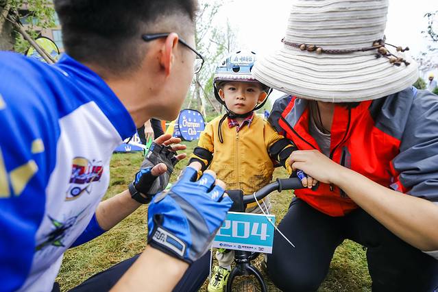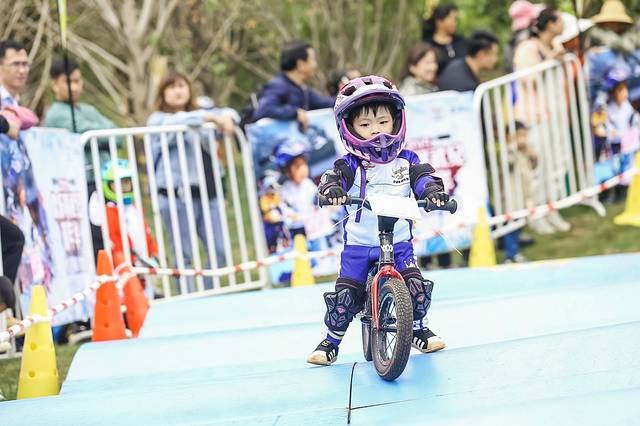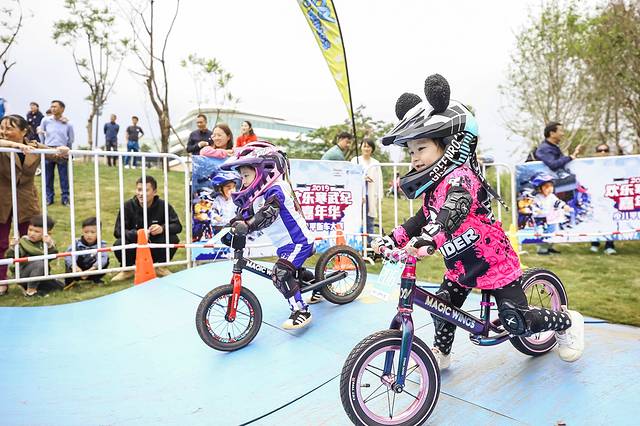 除了男孩,还有女孩的身影,同伴的孩子很厉害,一直处于领先的位置,家长们在场地边不断地给孩子们加油打气,而且今天不算很热,天气也是相当给力。