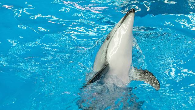 顿时,海豚宝宝在水中听话地跳起了芭蕾,转眼间看到激动人心的高空跳跃,真的很难想象,海豚原来可以跳那么高。
