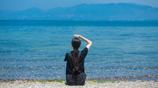 来到 昆明 ,再自驾一段路程,就能看到一片广阔又清澈的湖面。当我轻轻走进它,放眼眺望,天连着水,水连着天,水天一色;天空与湖水相映,天空的云映在湖 水里 ,湖中的蓝衬托在天空中,湖天相映。顿时,我陶醉在了这迷离的景色中。