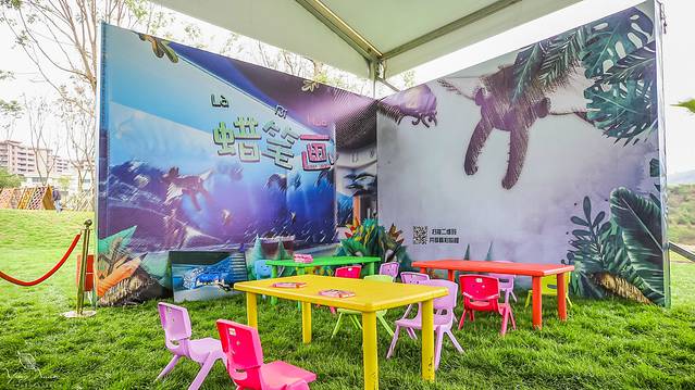 因为今天是儿童节,所以欢乐农场有个寒武纪互动集市,孩子们可以在这里体验到各种不同的乐趣,下一秒我也想成为小朋友,加入他们。