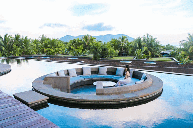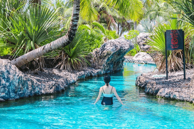 好喜欢这个“ 棉花堡 ”般的泳池,中午时好像把 三亚 的阳光都凝聚了在一起,闪闪发亮的自带仙气~但是已到了夜晚,这里变幻成一个酷炫的泳池party。