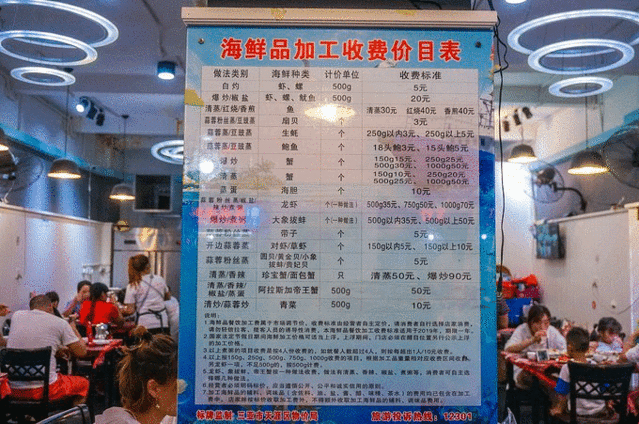 不同地区海鲜加工收费标准不同,而在 三亚 加工海鲜绝对不会有被坑的现象,因为这里由物价局统一规定,每家海鲜店的加工费都要明码标价,收费统一,所以在 三亚 ,在海鲜加工费这块不需要担心是否收费合理。