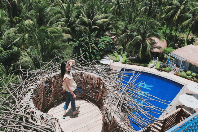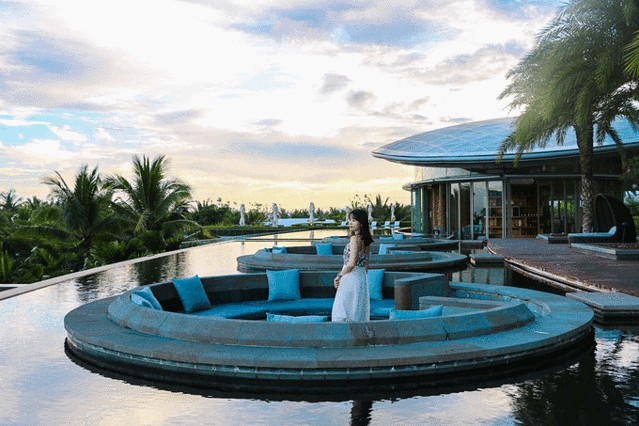 听说在 陵水 玩酒店就够了,万豪酒店在六楼的露台打造了一些网红拍照景点,在这里就可以打卡印尼的鸟巢和 大理 的玻璃球。推荐大家下午的时候来露台,此时拍照不会逆光,天空蓝蓝的还有白云朵朵,随手一拍就是大片。