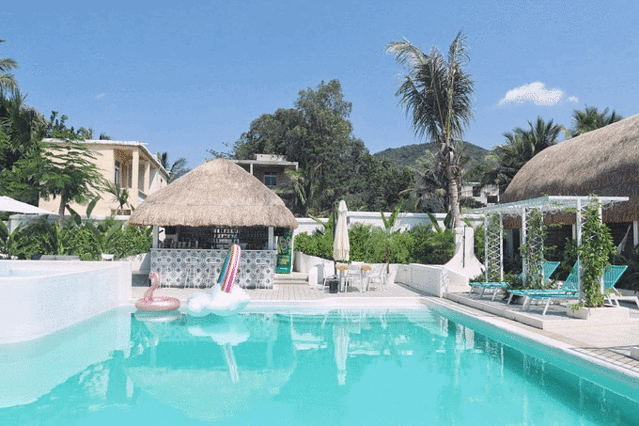 比邻near椰林美宿的泳池旁还有三栋木屋别墅,出门就可以享受到椰林和泳池,在比邻这可以轻易就收获惬意满满的度假风。在泳池旁还有一个茅草酒吧屋,夜晚时在这里和朋友喝上几杯热带风情的鸡尾酒。
