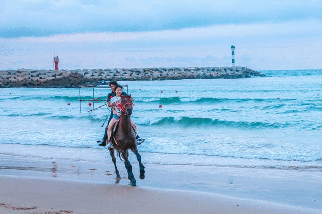 天空和大海本是天生一对,却被地平线分成天涯海角,于是云变成天空的嫁纱,浪成了海的情歌,于是雨化成天空的眼泪,涛成了海的思念。来到了呆呆岛,许多恩爱的新人在这里拍大片,而我想要嫁给大海。