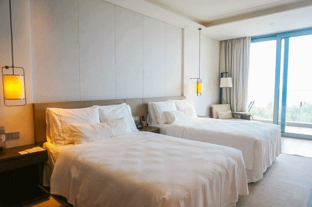 住进蓝湾绿城 威斯汀 度假酒店,我预定的是豪华海景房,好像被升级到了精选海景房,第一感觉这里的房间和我以前住过的酒店都不太一样,客房的空间十分宽敞,落地窗外有个大阳台可以看到大海。
