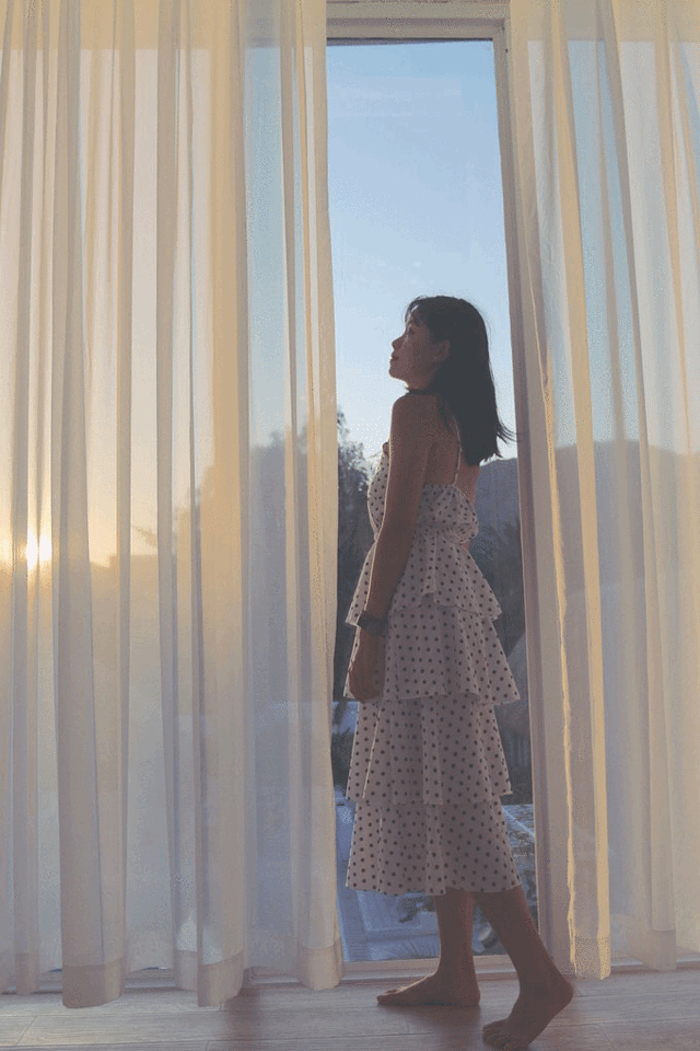 喜欢这件轻婚纱的小长裙,薄纱质地非常柔软,不会让人觉得累赘,裙子点缀了菠菜绿的花纹,搭配收腰的设计,穿上显瘦哦~