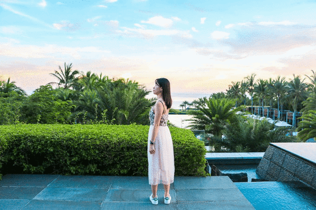 我站在鸟巢里,浑身的细胞都沐浴着湿湿软软的微风,脸颊留下了微风拂过的腼腆,来到香水湾富力万豪度假酒店,轻易承包了整个夏天。