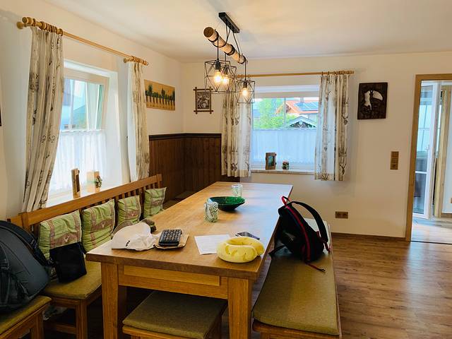 独栋别墅,有5间房间,对面有个小公园,孩子们很喜欢。从阳台望出去景观非常好,就算只是呆在这里发发呆都觉得是很惬意的事情。地点不在贝希特斯加登,而是旁边的小镇,离国王湖更近一些。开车无论是去贝希特斯加登还是国王湖也都只是十来分钟的时间,算是非常方便,步行半小时距离之内也有几家不错的餐馆。除了洗衣房比较脏之外,别的硬件设施都还是满意的。