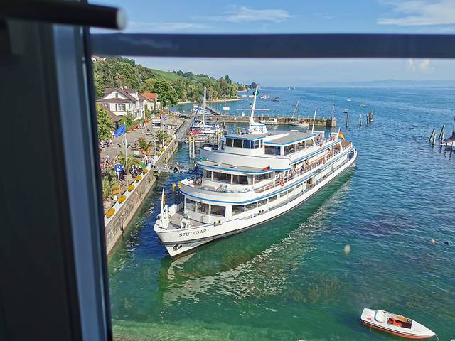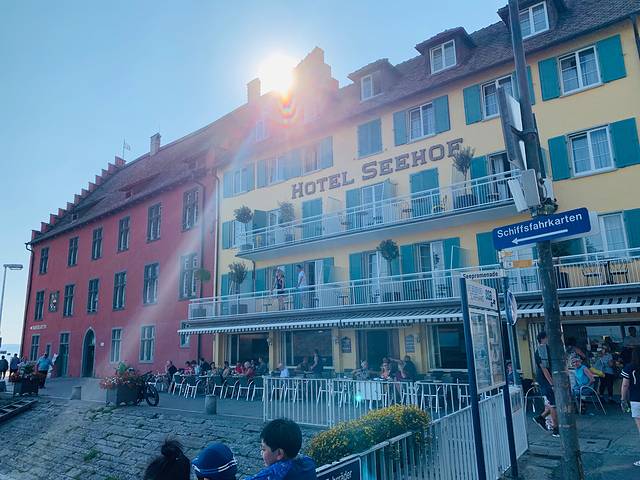 emmmm… 可以说是此程性价比最低的一个酒店吧。湖景酒店都是在同一条街的,然后这一间酒店并不是对着湖中心的全景,而是望着游艇码头,虽说也别有一番风味,可却不是我心里预期的那一回事儿。 住在镇上会相对方便一些,商店或者餐厅都很多,傍晚时分的酒吧也很有度假feel, Burg Meersburg 在山上,走上去也就十几分钟的事~ 山上也有一些酒店的,但我更喜欢湖边。