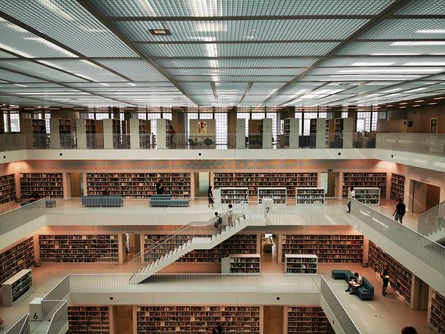 第二站是世界十大最美图书馆之一的斯图加特市图书馆,从外面看是平平无奇,一进门也没啥异样,到了最高层8楼一出电梯简直是把我惊艳到了,空间设计感超有层次,应该很符合大众对德式印象那种有棱有角的想象。可惜时间有些仓促,只能匆忙打个卡再陪小肥去2楼读下绘本就得走了…