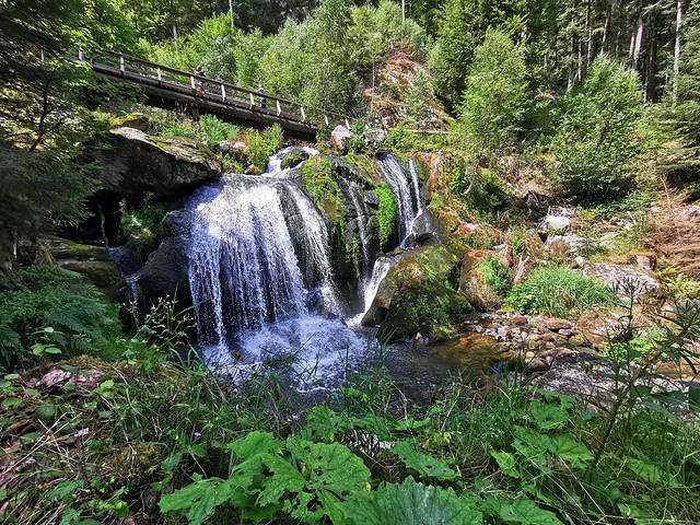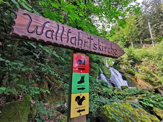 除了可爱的小镇之外,还有另外一个目的地就是 —— Triberg waterfall,是很秀气的瀑布,涓涓细流逐节而下,整个山谷是流水的回音~ 入口检票处有花生卖,不是拿来自己吃,是拿来喂松鼠的,所以满山都是小朋友追着松鼠跑的身影,上窜下跳比松鼠跑得还欢!