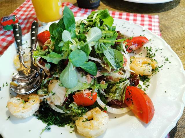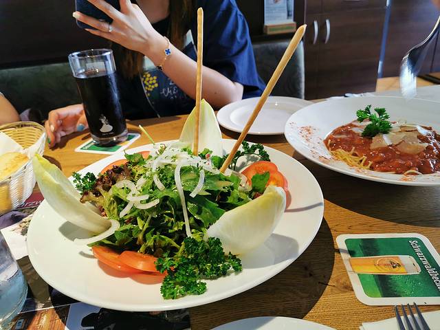 来到黑森林地区还是很想在这种山区小镇尝尝黑森林蛋糕,在tripadvisor 一顿搜,找到这家当地排名第一的餐厅~ 味道是真的很不错, 特别在德国我们真的很少能吃到这么多新鲜蔬菜,就算是特地点了沙拉,也多数是肉菜混合的,这里连主菜的sides都有很多蔬菜真的让人胃口大开~