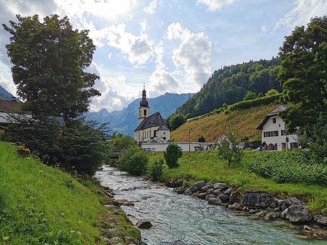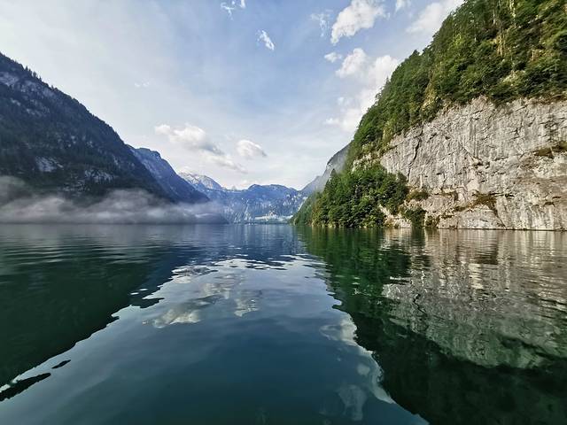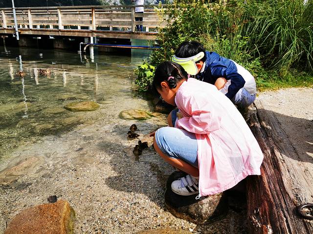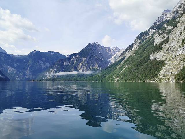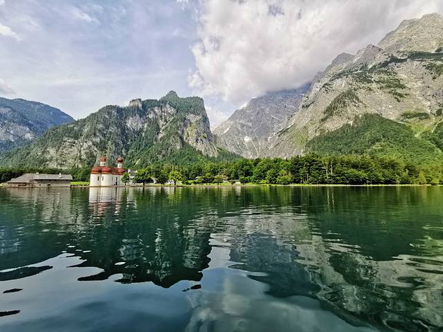 国王湖是来德国的初衷,趁早上雾气弥漫的时候湖面的景色是最仙的~ 建议赶早来搭乘第一班8点开出的游船。 从码头出发游船有两个下船点,第一个是St. Barhhooloma 红顶教堂,第二个下船点到Salet Obersee,想饱览国王湖的全部美景建议第一个游船点先不要下船,在第二个下船点下船后不行沿着国王湖后湖徒步,沿途风光迤逦美不胜收,只是我们带着4只神兽颇为吃力…… 约一个多小时来到湖对岸,可以在小店买上一杯牛奶和一份火腿芝士稍作休整再返程,回到下船点乘船到红顶教堂游玩,吃个国王湖特产的鳟鱼,慢慢玩下来也差不多一天的时间。