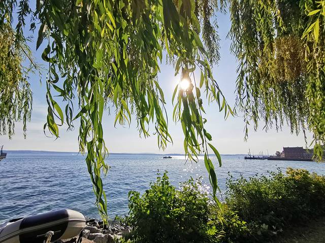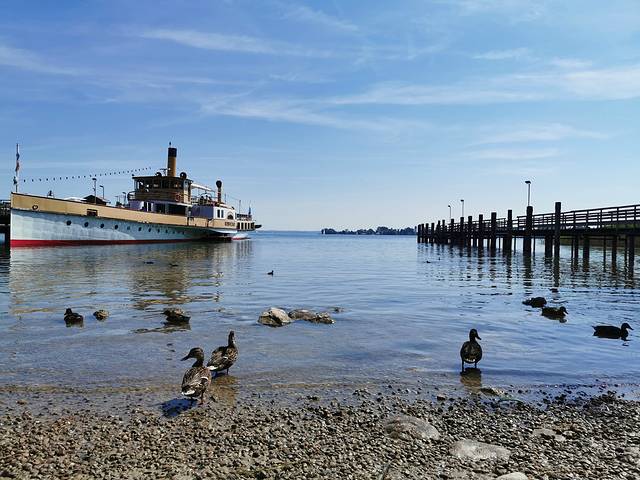 已经连续赶路两日的我们今天放弃了原本计划的树顶栈道和维斯教堂(世界遗产),直奔博登湖畔小镇Meersburg, 把4小只交给男人们,放进湖边的社区泳场扑腾得乐不可支,而我们闺蜜3人临湖漫步,悠然自得~