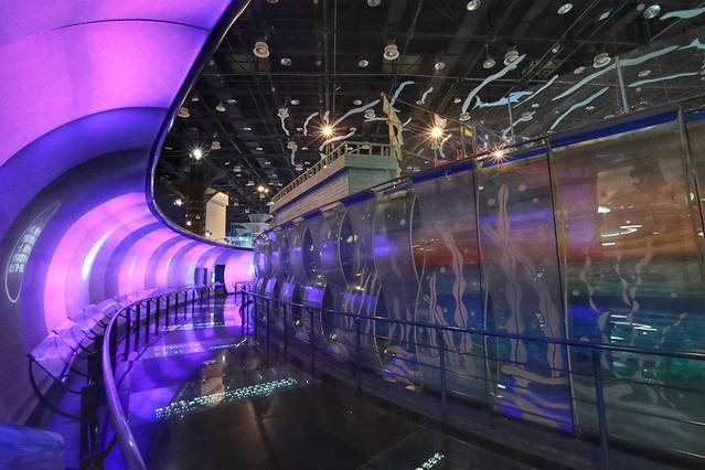 厦门 科技馆,原本有五个主题展馆 “海洋·摇篮”、“探索·发现”、“创造·文明”、“和谐·发展”、“儿童·未来”,讲述这样的科学发展脉络:生命源于大海——人类诞生后探索自然,总结科学规律——创造社会文明——现在,人类寻求和谐共生——儿童的科学教育决定未来。