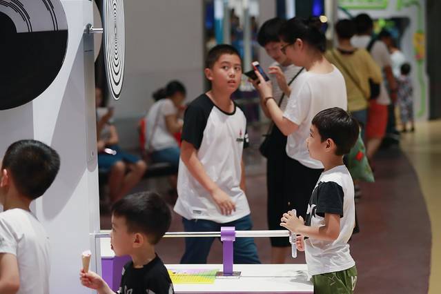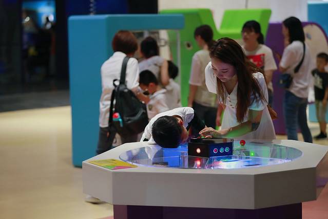 科技馆里,众多孩子兴奋地在馆里四处探奇,这里能够让孩子玩上个大半天。