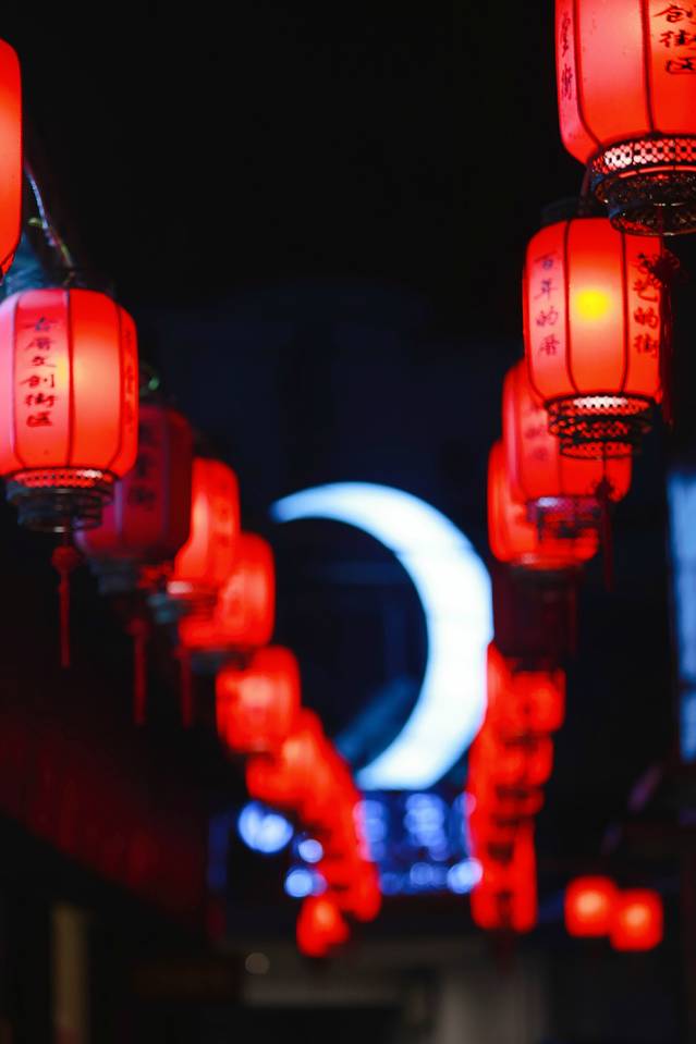 浓浓的乡村风格建筑,悠闲慵懒的生活节奏,大红灯笼依次亮起,老街又是另一派的热闹景象。