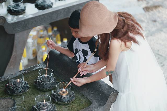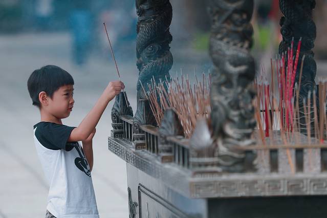 在这里不需要买香,寺院给想上香的客人免费提供一枝,一枝香拜十方佛。