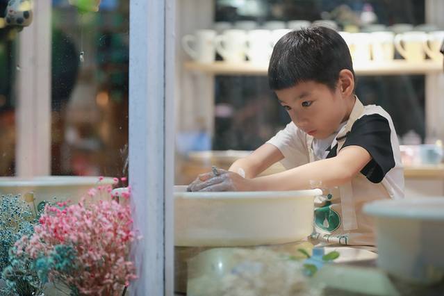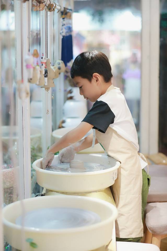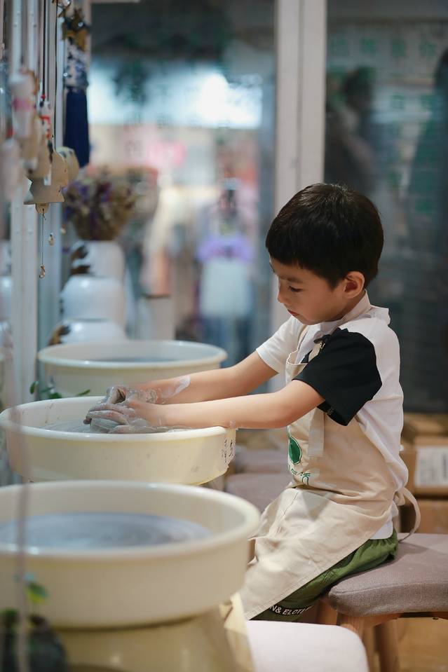 玩泥巴是每个孩子天性的开始,做陶艺其实就是“玩泥巴”,对于孩子来说,他们尽情感受泥性的柔软、成型的随意,再加上工具的运用,尽兴地发挥自己的想象力,手中的泥会变得千姿百态。