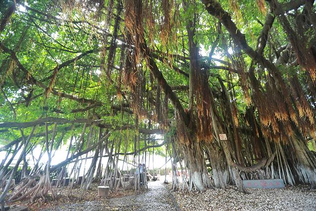胡里山炮台景区内,有一处著名的景观叫做“独木成林”。一棵枝叶繁茂的大榕树伸出许多根扎入土壤,大的树根像圆柱,小的像晾衣杆,密密麻麻的,数不清具体数量。