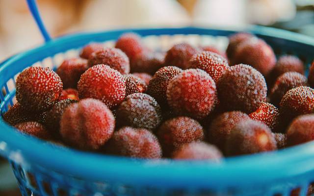 杨梅色艳汁多,最初是淡红色的,味道酸甜可口,但是随着长熟会逐渐变成深红色和黑色,也被誉为“果中玛瑙”,更是有着“杨梅冠天下”的美誉,此外杨梅还具有消暑生津、利尿健脾、解渴止咳、健脾开胃、增进食欲、促进消化等天然医疗保健功能。