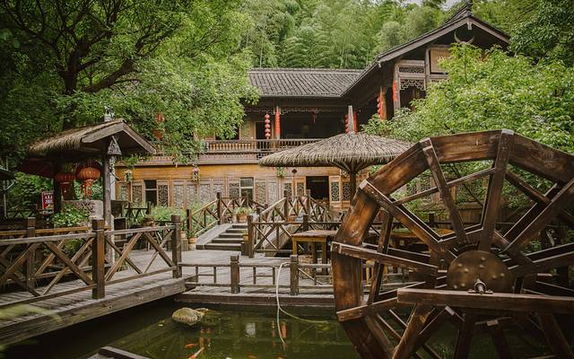 若是时间尚早,不妨多走几步,来到温泉南墅里绿阴掩映中的二十二个露天泡池中,体验一番温泉的乐趣,于古风雅韵里,自然养生,自在达蓬~
