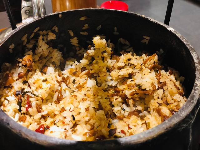 外婆菜吊锅饭 ~~吊锅饭其实就是 锅的形状是上面有把手的吊锅 下面🔥加热着 我挺喜欢湘西外婆菜 还是但炒外婆菜更好吃哈哈哈