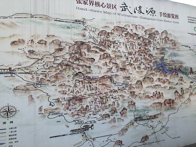 森林公园整体地图,一般客栈都会免费给的,问老板基本都会和你讲游玩线路!客栈一般都可以帮忙订景区门票、门票是一张卡,进景区刷卡输指纹,方便后几天入园。