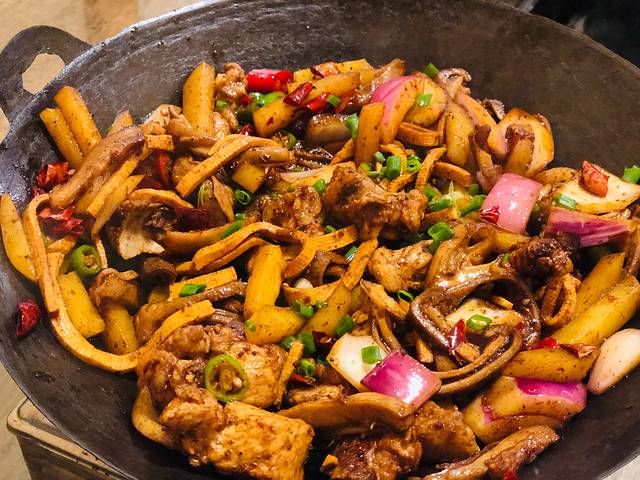 晚上下山大众点评搜到了这家饭馆,从标志门出来步行个五六百米就到啦!我们下午5:45左右到的,前面有一桌等位的,可以先在前台那里点菜、张家界的特色主要就是三下锅、他家有大份儿 小份儿可以选、分别是两荤三素、三荤三素~~两个人要小份儿足够了,我们选的排骨和猪肚,不建议选排骨,不太入味儿 肉也不烂北方人认为不如炖排骨好吃哈哈哈~~素的是洋葱、土豆、豆皮儿/千张;荤菜可选是肥肠、排骨、猪肚、腊肉