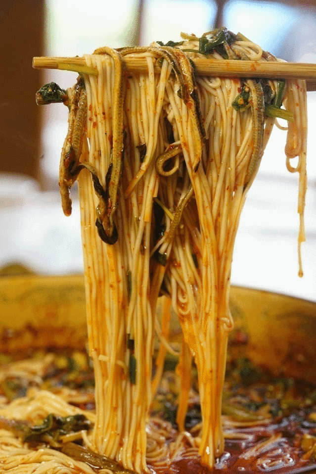 一种是做丝一种是做段,鳝丝是藿香味,吃完鳝丝以后一定要让老板来份面,将白面放进剩下的汤汁里面,味道浓郁相当巴适。鳝段也是香辣口味的,辣度适中,不能吃辣的朋友也能接受。