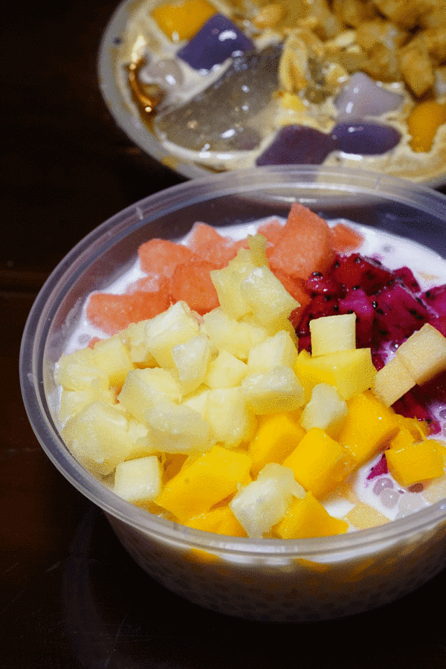 小丑还点了他们家的冰粉、西米露、水果捞还有糍粑。不得不说传统冰粉、古法凉糕真的不是盖的!冰粉要了两种,一种上面是满满的糍粑和芋圆,满满的都是享受啊,滑溜的冰粉碰上扎实的糍粑和芋圆,必须擦出火花啊!