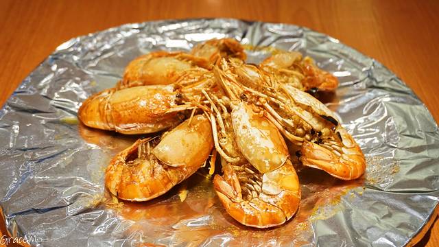 当火山喷发完毕,浓郁的虾香在蓝紫色的余火中蔓延开来,金黄发亮的虾壳发出咔滋脆的诱惑,顾不上热气,徒手抓起一只虾掰开,丰富的虾膏迅速爆发,不用蘸上任何调料,弹Q的虾肉瞬间征服味蕾!