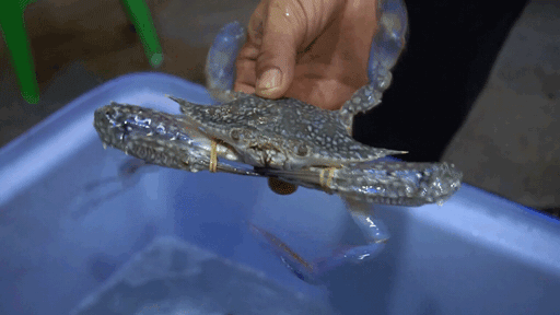 肥美肉蟹焗粉丝,都是欢蹦乱跳的大肉蟹,每只足量300克。不小心解开绳子蟹大哥跑起来可是一路麻溜。