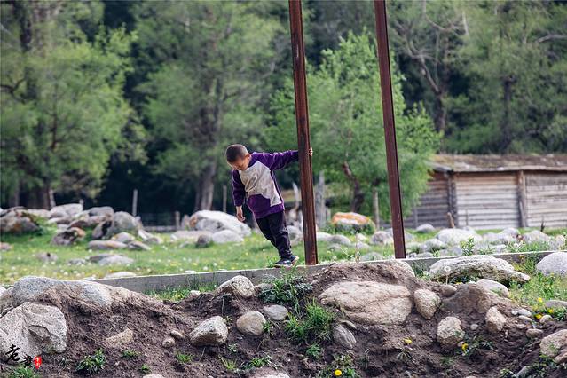 琼库什台的居民,绝大多数是哈萨克族。我们一行在观赏美景的同时,偶遇了一些当地小孩,瞬间让我们的爱心泛滥。不得不说,这些拥有着外国人面孔的小朋友,都好可爱,太像洋娃娃。他们有些对于汉语都不太熟悉,只会简单的一些字句。但通过我们的互动交流,他们最终能和我们打成一片。从和他们的交流过程,我最深切体会的是语言的障碍并不是交流的最大限制,其实只要有心,彼此就能走得很近。